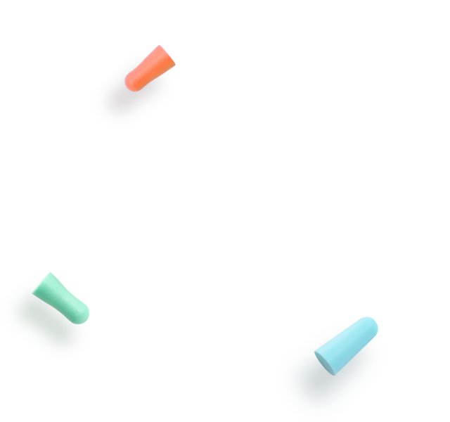 耳せんの遮音性能は「NRR(単位:㏈、デシベル)※」で表されます。例えば、地下鉄の車内の騒音が約80㏈といわれており、この環境で遮音性能30㏈を有する耳せんを着用すると「約80㏈-30㏈=約50㏈」となります。耳せんが騒音をカットして、静かなオフィス(約50㏈)と同じ環境を創り出します。