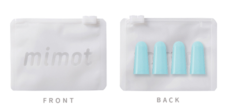 抗菌耳せん mimotは、耳せんを傷めないように、UVカットのジップバッグに入っています。UVカットのジップバッグは、耳せんの保管バッグとしてのご使用後、小銭や小物入れとしてご使用いただけます。